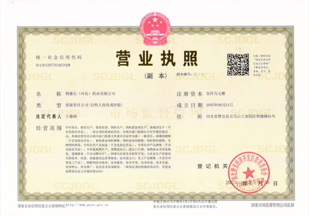 利德爾(河北)藥業(yè)有限公司,始創(chuàng)于2005年6月,坐落于河北省重點工業(yè)園--五馬山工業(yè)園區(qū),廠區(qū)占地30余畝,總投資8000余萬元,具有國際一流的生產(chǎn)設(shè)備、化驗設(shè)備,擁有粉劑、散劑、預(yù)混劑、中藥提取、口服溶液劑、殺蟲劑、消毒劑等多種劑型。于2023年1月份順利通過新版GMP驗收。