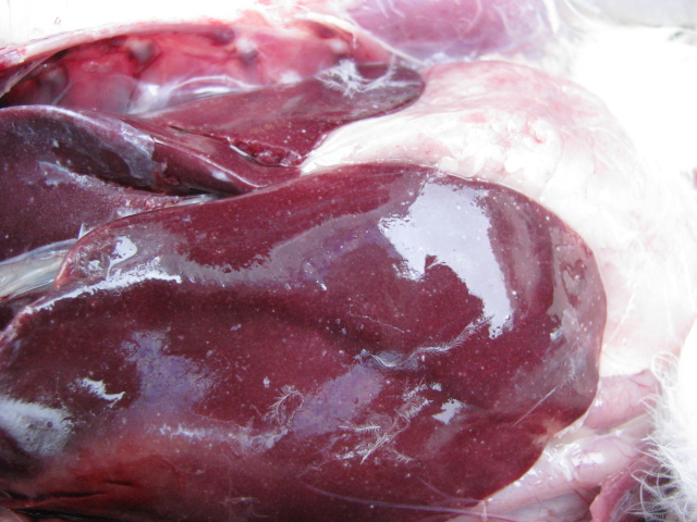 剖解:肝臟腫大,上有針尖大小黃色星狀斑點(diǎn),十二指腸大量出血和充血。
