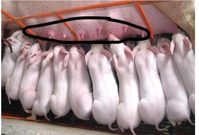 7、還有一種原因就是有些外種母豬會出現(xiàn)莫各其妙的無乳或少乳;蛘哌z傳基因也會,苦奶汁也會造成無乳