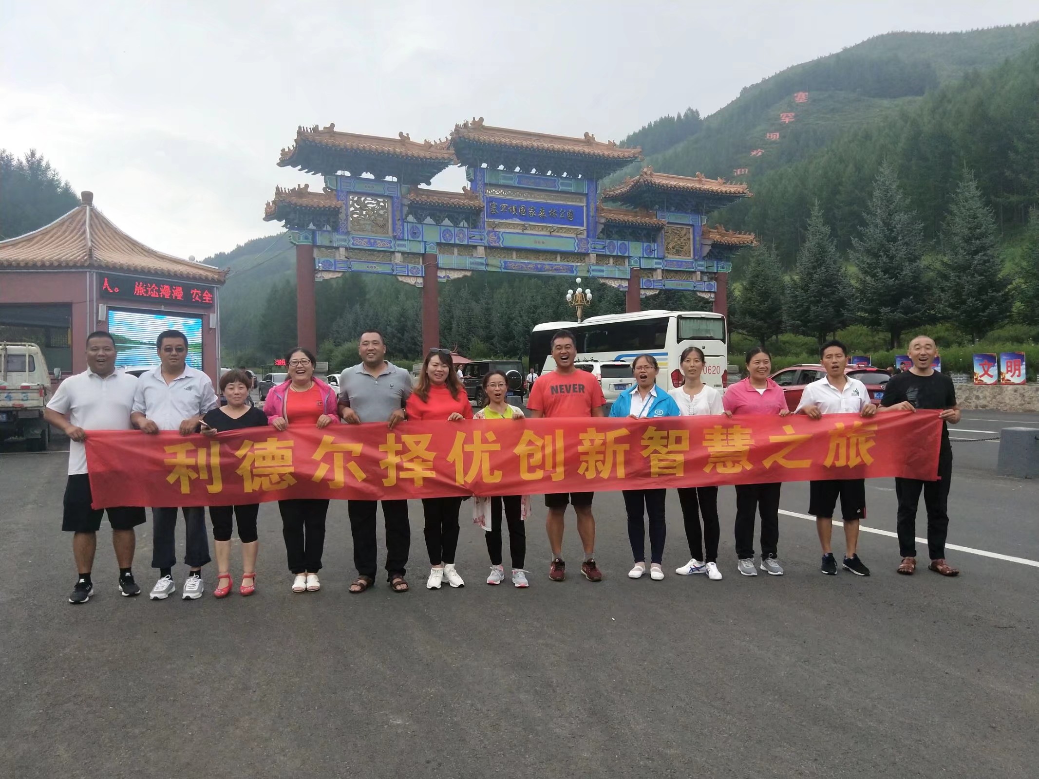 8月5日,公司一行十三個人,開啟了北上塞罕壩之旅。我們早上7點半出發(fā),好事多磨,在高速路口,受限制不能上去,只有繞道,另找入口。九點多終于上去。車在高速上馳騁,我們的心也跟著飛向草原,一路歡聲和笑語,大概到晚上9點左右,到達塞罕壩的大門。
