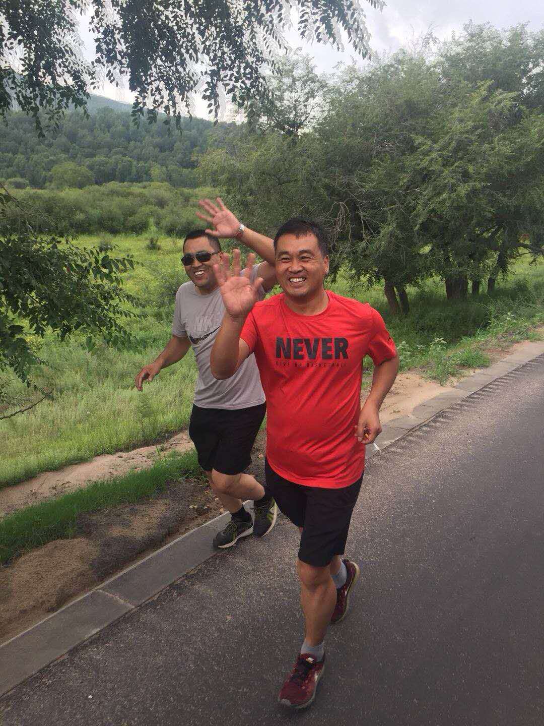 本以為已到目的地,結(jié)果還需開車繞行而上,天黑,加上下雨,車速不敢太快,沿路沒有路燈,開始進入森林地帶,真擔心,會不會從林子里跳出只“大貓”來!哈哈,開個玩笑了!大概有一個小時的行程,我們來到提前預定好的住所,香噴噴的烤全羊,已經(jīng)讓饑餓的肚子忍不住,流口水了,進入房間放下行李,稍作收拾,直奔餐廳。十多個人圍著一張大圓桌,等待店家把全羊呈上來,羊烤的外焦里嫩,不到一個小時的時間一只60斤的羊,就剩下了骨頭架子,戰(zhàn)斗力不錯吧!由于氣候涼爽,空氣清新,飯后他們又一起跑去遛彎吸氧!呵呵,精神頭十足。