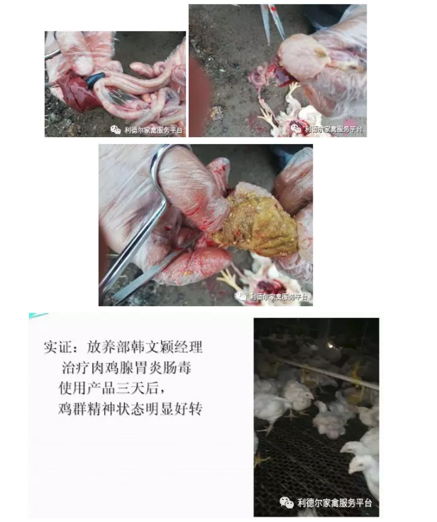 雙A肉雞25天發(fā)病,雞只吃料不跟天,背羽逆立,糞便過料,參芪腺胃康配合球毒雙滅用三天后,雞群精神好轉(zhuǎn),吃料跟天,長勢明顯,糞便恢復(fù)正常。
