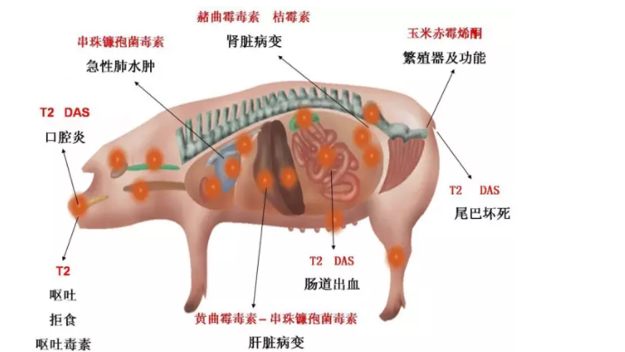 育肥豬:仔豬假發(fā)情、厭食、嘔吐、咳嗽脫肛、生長(zhǎng)緩慢,造成各種疫 苗免疫抑制,是各種傳染病的導(dǎo)火線,是影響豬場(chǎng)生產(chǎn)效率的無(wú)形殺手。
