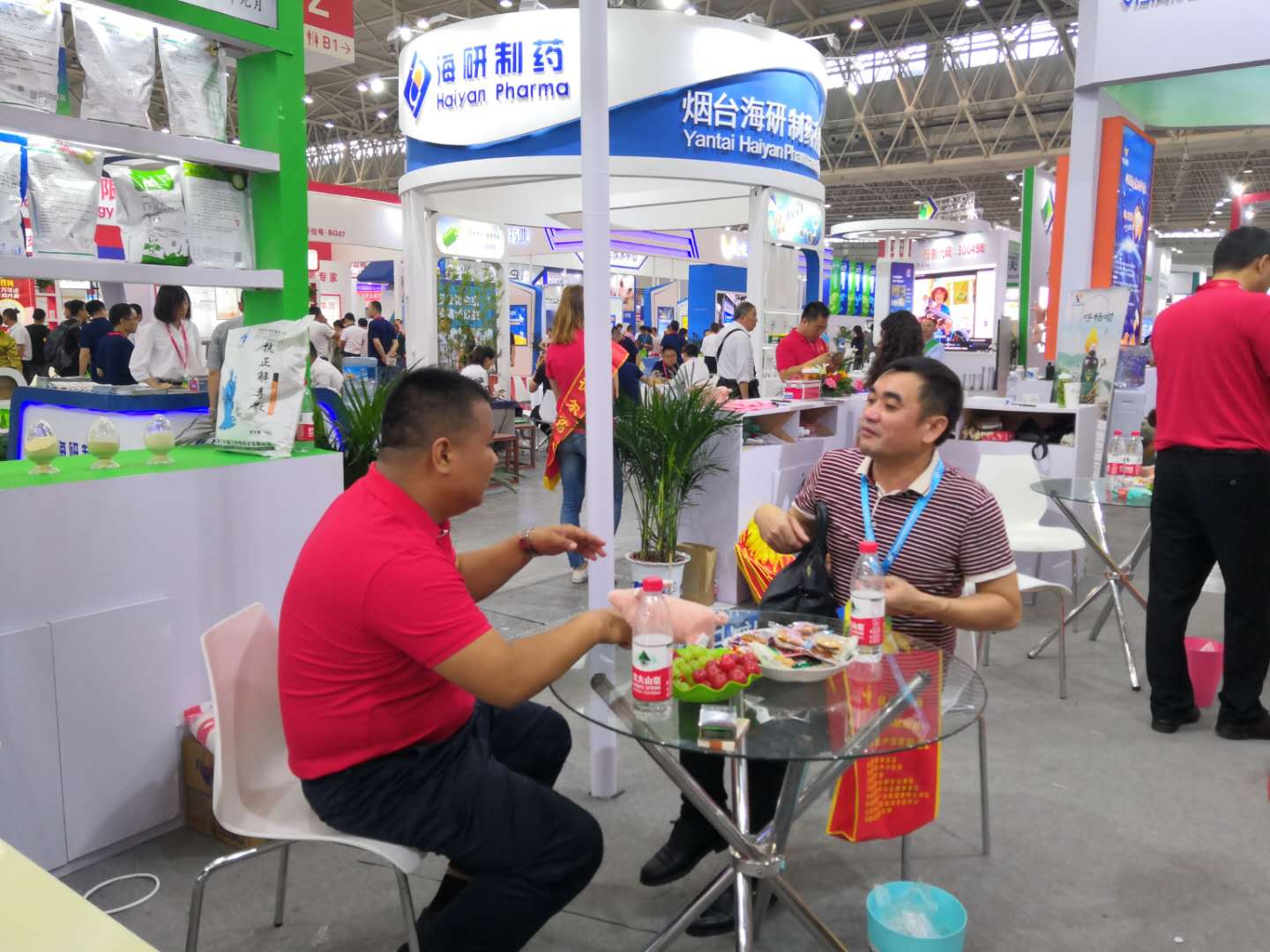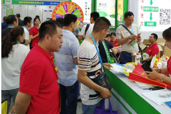 展會上利德爾藥業(yè)B2館BH12展位,以一往的綠色為主調(diào),加上參會人員,紅色工裝的點綴,成為會場的一道靚麗的風景線。