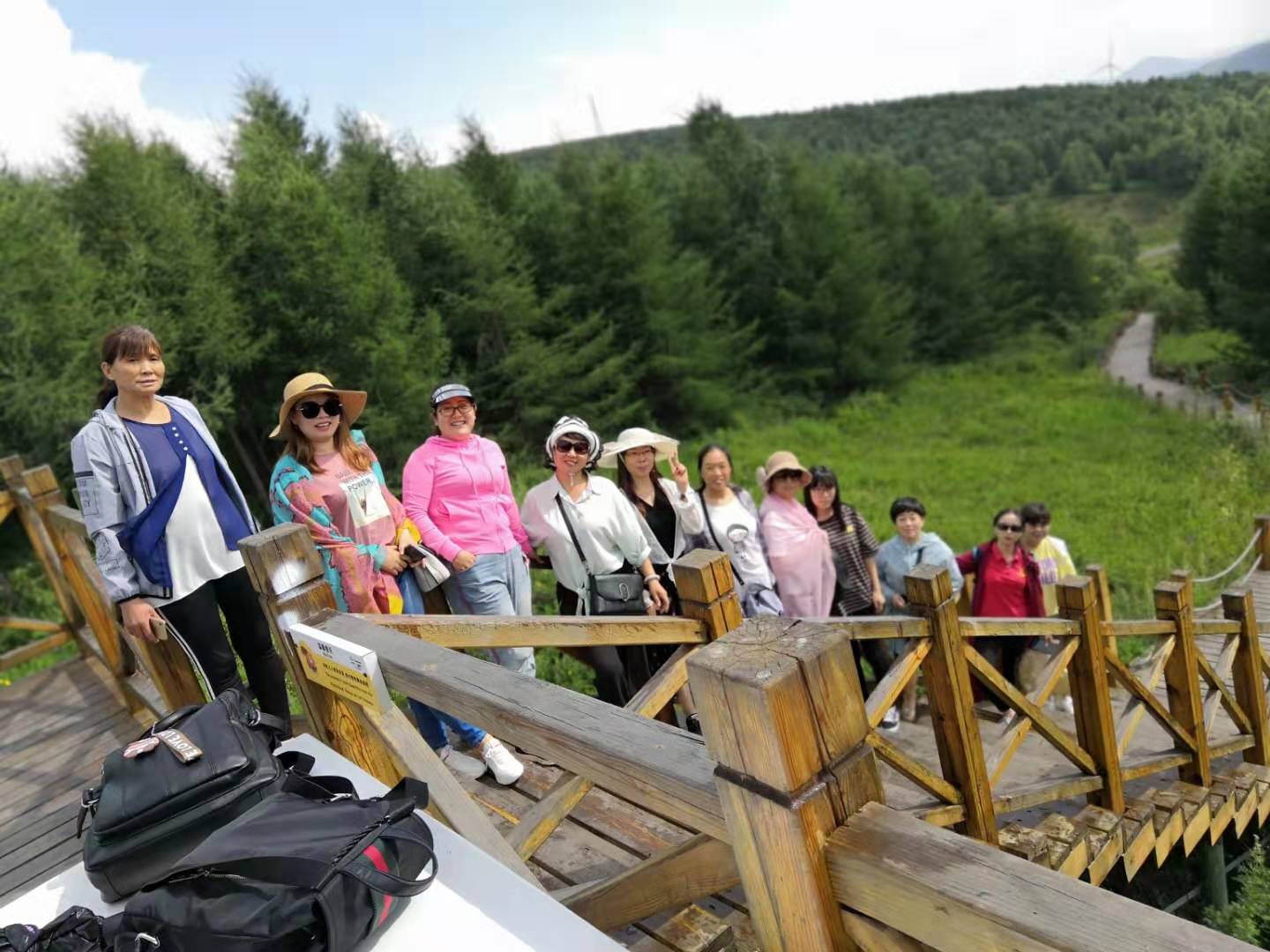 由于崇禮為了準(zhǔn)備2022年的冬季奧運(yùn)會(huì),到處在修路,所以路上耽擱了點(diǎn)時(shí)間,下午2點(diǎn)到達(dá)翠屏山,這里可是天然額氧吧,到處蒼松勁挺,山巒蜿蜒、空氣清新、野花爛漫。您不僅可以觸摸明長(zhǎng)城遺址的古韻,觀賞風(fēng)車矩陣的雄偉壯觀,體驗(yàn)林海松濤的樹聲鳥鳴,欣賞山頂花海的絢爛多彩,感受電車穿越在蜿蜒的山林間,涼風(fēng)嗖嗖的灌耳,一排排的松樹甩在了身后,讓你夏日間感受清涼的絕境。登上山頂后,大家不顧平日的羞澀,擺出各種姿勢(shì),美拍,玩的時(shí)間感覺很短,沒有多久,兩個(gè)多小時(shí)過去了,在游覽期間可以看到運(yùn)動(dòng)員在訓(xùn)練,為了冬奧會(huì)做準(zhǔn)備。之后乘車前往壩上草原。