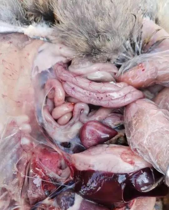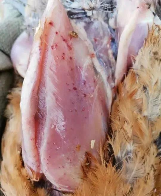 通常潛伏期為6~10d,病雞初期體溫升高,精神沉郁,下痢,糞便呈綠色。特征性癥狀是死前口流鮮血,貧血,雞冠和肉垂蒼白,常因呼吸困難而死亡。成年雞感染后病情較輕,發(fā)育受阻,產(chǎn)蛋率下降,甚至停產(chǎn)。剖檢病死雞可見全身皮下出血,肌肉尤其是胸肌、腿肌、心肌有大小不等的出血點(diǎn),各內(nèi)臟器官腫大出血,尤其是腎、肺出血最嚴(yán)重;胸肌、腿肌、心肌和肝脾等器官上出現(xiàn)白色小結(jié)節(jié),針尖至粟粒大小,與周圍組織有顯著的界限。腸黏膜有時(shí)有潰瘍病灶。