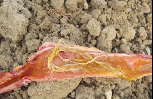 蟲體積聚成團(tuán),導(dǎo)致腸阻塞,甚至腸破裂而引起腹膜炎;其代謝產(chǎn)物被吸收后可引起中毒反應(yīng),出現(xiàn)神經(jīng)癥狀。臨床常見糞便稀薄且有黏液,食欲降低,渴飲增加,迅速消瘦,精神沉郁,兩翅下垂,頭和頸扭曲,蛋雞產(chǎn)蛋量明顯下降或停產(chǎn),最后極度衰竭而死亡。對(duì)病死雞剖檢可見腸黏膜增厚,出血,腸腔內(nèi)含有大量黏液,惡臭。棘溝賴?yán){蟲寄生時(shí)在十二指腸壁上有結(jié)核樣結(jié)節(jié)。腸黏膜下附著蟲體。