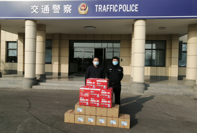 1月19日利德爾劉總向贊皇縣消防救援大隊(duì)和交通警察大隊(duì)捐贈84消毒液等物資