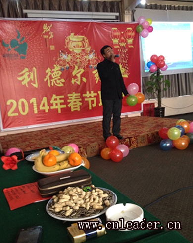 王總首先給大家送去新年誠摯的祝福,和對2014年的展望。然后由馬棟梁的《路在何方》,把聯(lián)歡會帶進(jìn)高潮,他的聲音渾厚有力,贏來陣陣掌聲。日常的工作生活中,每天都在和人打交道,如何能夠明白對方的意思呢?《善解人意》,就是很好的表證。李萌和馬棟梁的《心雨》對唱,如同金童玉女再現(xiàn)。公司的四位帥哥,同臺亮相,為大家表演《三句半》。庫管的楊艷,平時活潑愛動,這次為大家送上《老婆最大》一首歌,又給大家?guī)須g快的享受,掌聲不斷。《同心協(xié)力》的運(yùn)氣球游戲,讓觀眾們只喊加油!呂海竹的《我只在乎你》,歌聲優(yōu)美動聽,讓小朋友都不由的上去和她同唱…………,后面的節(jié)目一個比一個精彩,所有的人都沉浸在歡樂的氣憤中。我們的王總也被這個場景感動,不由的一下為大家送上兩首歌《最真的夢》和《說句心里話》,下面掌聲歡呼聲一片。我們的嘉賓閆亮導(dǎo)師,也為觀眾送上了《光陰的故事》,平時語言能力很強(qiáng)的閆導(dǎo),沒想到,歌聲也那么動聽。聯(lián)歡會中還穿插著,給優(yōu)秀員工頒獎,表示對他們的感謝和鼓勵,最后一一首《步步高》把聯(lián)歡會帶進(jìn)尾聲。