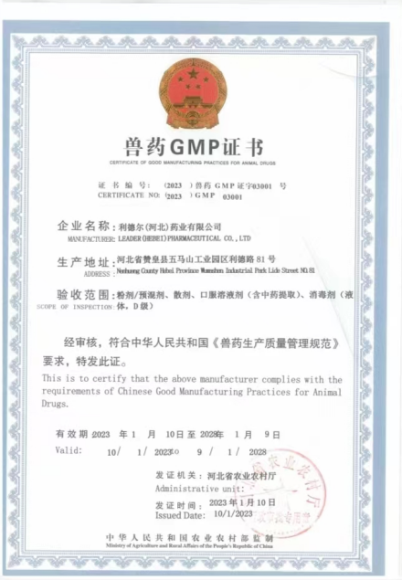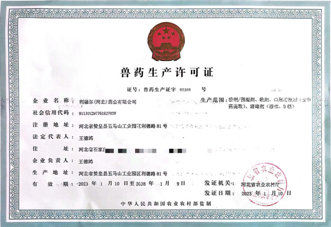 利德爾(河北)藥業(yè)有限公司,始創(chuàng)于2005年6月,坐落于河北省重點工業(yè)園--五馬山工業(yè)園區(qū),廠區(qū)占地30余畝,總投資8000余萬元,具有國際一流的生產(chǎn)設(shè)備、化驗設(shè)備,擁有粉劑、散劑、預(yù)混劑、中藥提取、口服溶液劑、殺蟲劑、消毒劑等多種劑型。于2023年1月份順利通過新版GMP驗收。