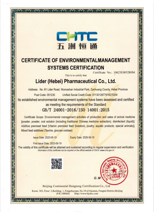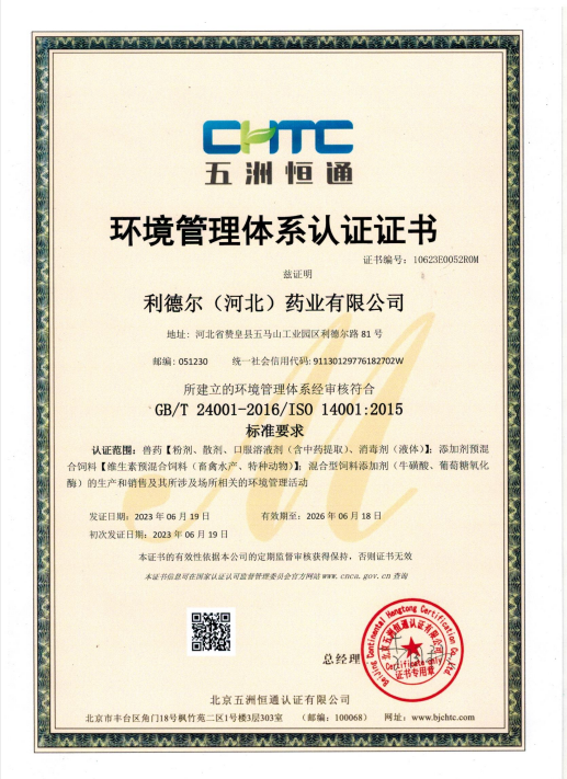 2016年投資建設(shè)的微生態(tài)混合型飼料添加劑車間、添加劑預(yù)混合飼料車間、中藥發(fā)酵車間已順利通過驗收并投入使用,并于2016年全廠區(qū)順利通過ISO9001質(zhì)量管理體系認(rèn)證。2018年9月份順利通過ISO14001環(huán)境體系認(rèn)證。目前已發(fā)展為集動物藥品、動物保健品、飼料、飼料添加劑、預(yù)混劑的研發(fā)、生產(chǎn)、銷售、服務(wù)、肉雞養(yǎng)殖、外貿(mào)出口為一體的綜合性現(xiàn)代化公司。
