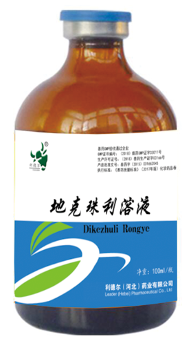【藥理作用】藥效學(xué)地克珠利屬于三嗪類廣譜抗球蟲藥,具有殺球蟲效應(yīng),對球蟲發(fā)育的各個階段均有作用。作用峰期在子孢子和第一代裂殖體的早期階段。對雞的柔嫩、堆型、毒害、布氏、巨型等艾美耳球蟲,鴨和兔的球蟲均有良好的效果。本品長期用藥易誘導(dǎo)耐藥性產(chǎn)生,故應(yīng)穿梭用藥或短期使用。本品作用時間短,停藥2日后作用基本消失。
