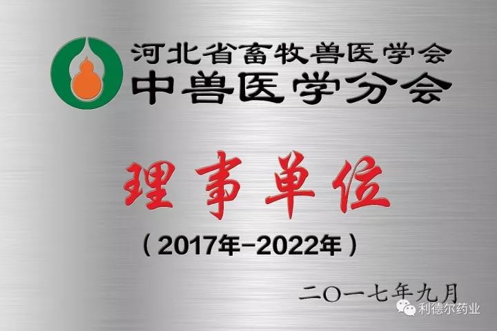 利德爾獲河北省畜牧獸醫(yī)學(xué)會中獸醫(yī)學(xué)分會常務(wù)理事單位