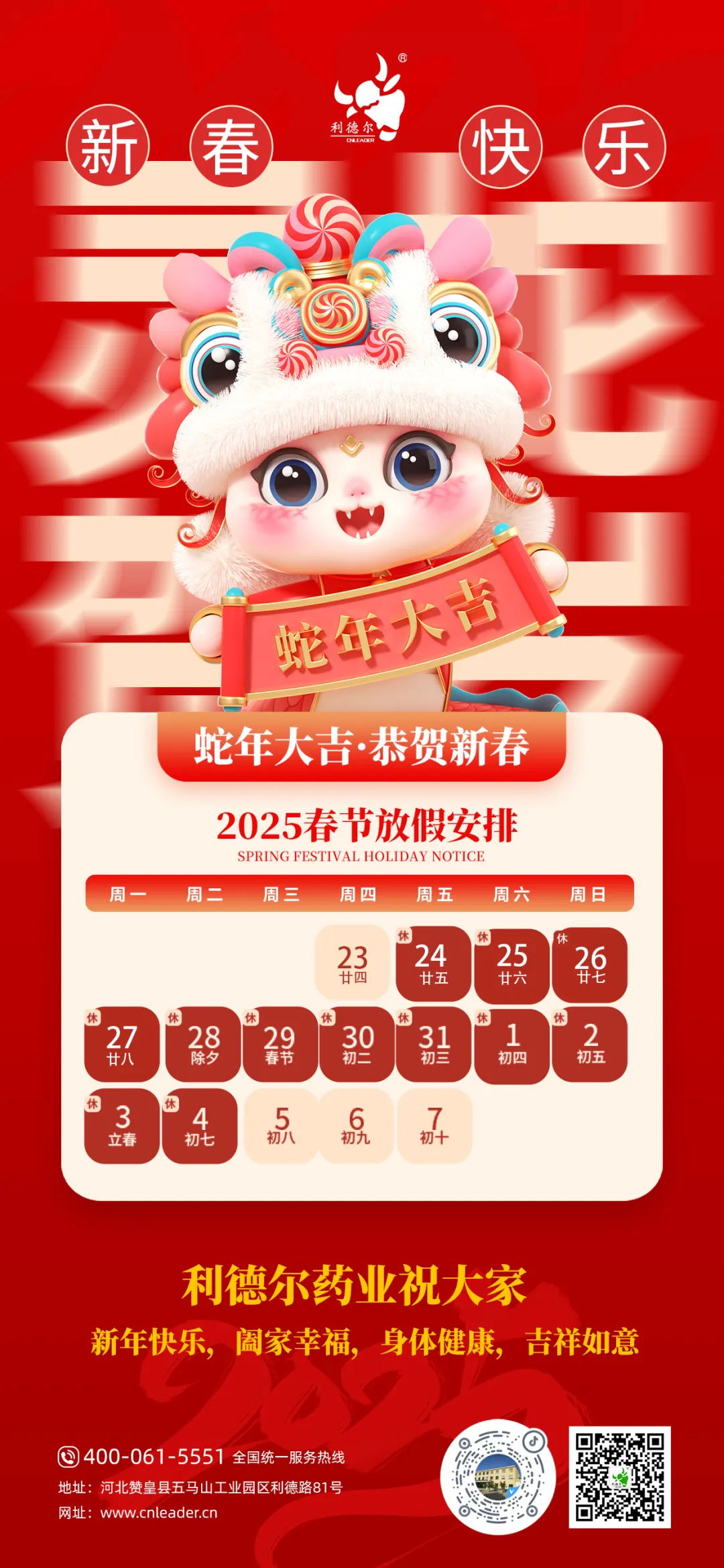 再次感謝您一直以來的信任與支持,衷心祝愿您和您的家人蛇年大吉,萬事勝意,闔家幸福!