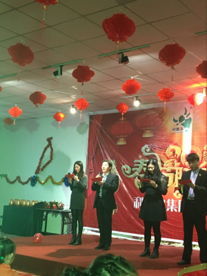1月12日,公司的辦公樓,三樓會議室,裝扮的花團(tuán)錦簇,到處充滿了歡樂的氣氛,每一個人臉上洋溢著歡快的笑容,現(xiàn)場的背景以紅色為主調(diào),一排排紅色的燈籠,象征著生機勃勃的企業(yè)和紅紅火火的新春氣氛。