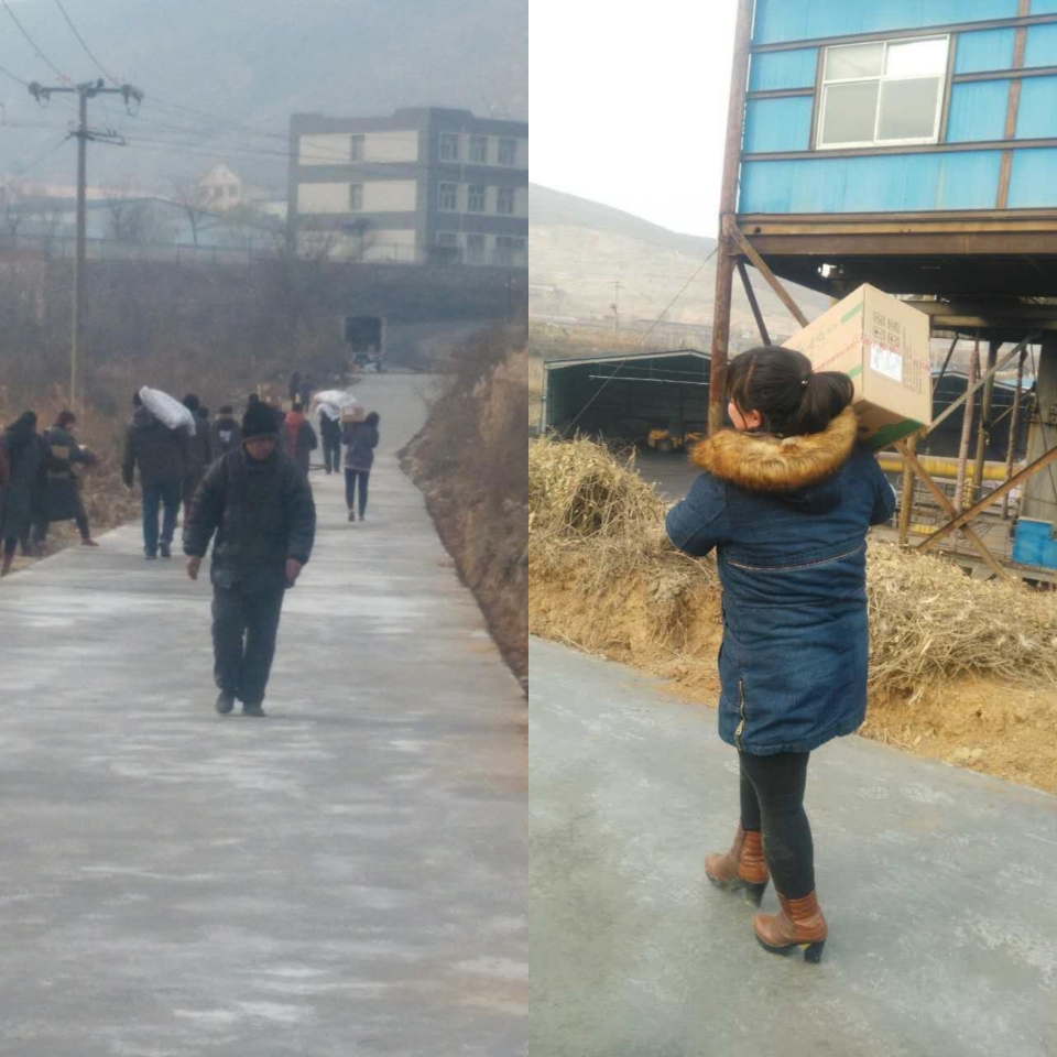 12月9日,我們接到廠區(qū)全員配合發(fā)貨的通知,然而在我們自己徒步來(lái)回都可能拌跟頭的情況下,再搬上貨怎么走過(guò)來(lái)呢?領(lǐng)導(dǎo)和員工們都在克服困難,從庫(kù)里用小車推到廠區(qū)門口。100多件的大扶正解毒散,40斤/件,20多箱的肝腎康,每箱40斤還是瓶裝的,加上其它的貨物共計(jì)300多件。女員工搬著40斤的貨物,200多米的難走路程,的確很吃力,但是姐妹們誰(shuí)都沒(méi)說(shuō)一個(gè)“不”字。