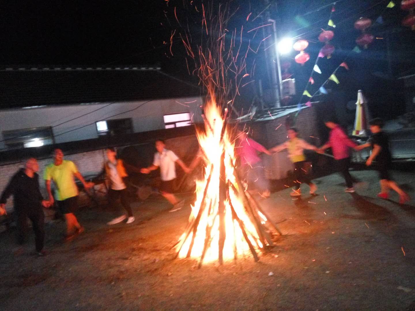 本以為已到目的地,結(jié)果還需開車繞行而上,天黑,加上下雨,車速不敢太快,沿路沒有路燈,開始進入森林地帶,真擔心,會不會從林子里跳出只“大貓”來!哈哈,開個玩笑了!大概有一個小時的行程,我們來到提前預定好的住所,香噴噴的烤全羊,已經(jīng)讓饑餓的肚子忍不住,流口水了,進入房間放下行李,稍作收拾,直奔餐廳。十多個人圍著一張大圓桌,等待店家把全羊呈上來,羊烤的外焦里嫩,不到一個小時的時間一只60斤的羊,就剩下了骨頭架子,戰(zhàn)斗力不錯吧!由于氣候涼爽,空氣清新,飯后他們又一起跑去遛彎吸氧!呵呵,精神頭十足。