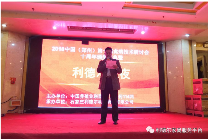 11月7日晚,由中國(guó)養(yǎng)殖業(yè)聯(lián)盟和中國(guó)獸藥114網(wǎng)聯(lián)合主辦的中國(guó)(鄭州)第十屆禽病技術(shù)研討會(huì)在鄭州德億大酒店舉行,晚宴由石家莊利德爾藥業(yè)承辦。