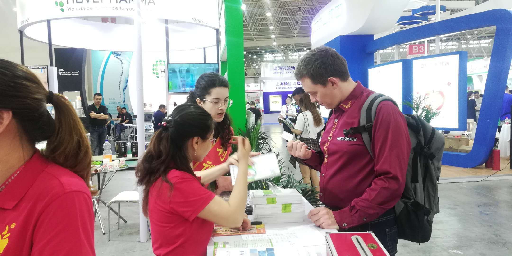 展會上利德爾藥業(yè)B2館BH12展位,以一往的綠色為主調(diào),加上參會人員,紅色工裝的點綴,成為會場的一道靚麗的風景線。