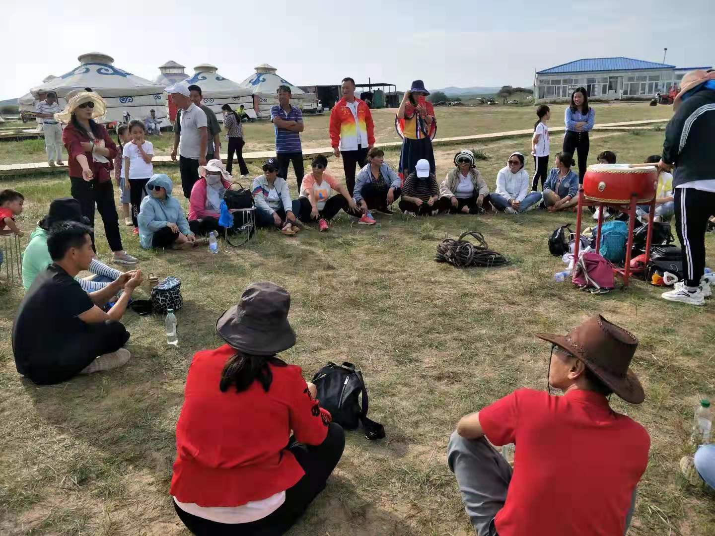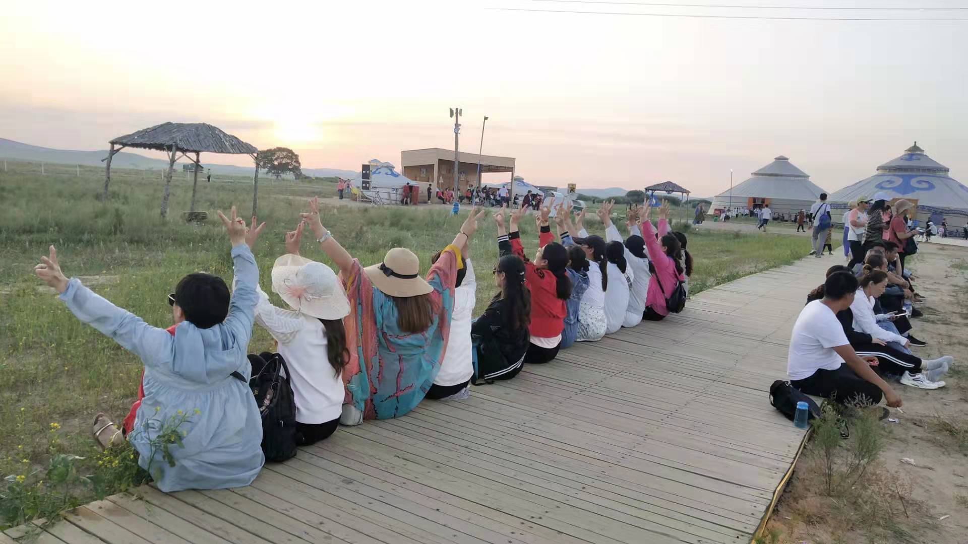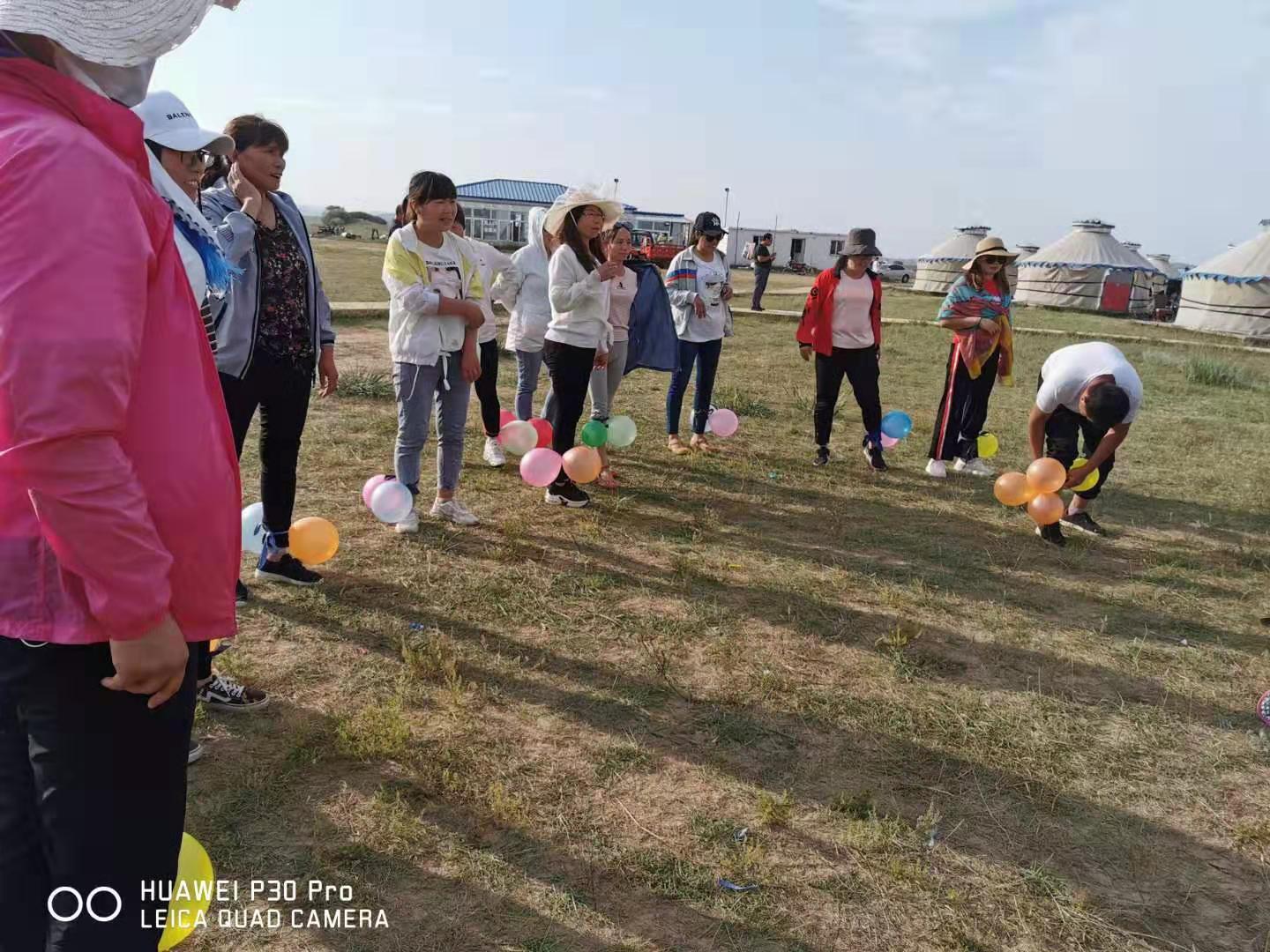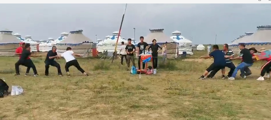 中午抵達(dá)蒙古大營(yíng),途徑忽必烈影視城和梳妝樓,盛裝熱情的草原小伙策馬揚(yáng)鞭,遠(yuǎn)遠(yuǎn)的迎著我們的車過來,為我們接風(fēng)洗塵,獻(xiàn)上哈達(dá)和下馬酒。中午品嘗草原的蝎子骨莜面宴,營(yíng)地里的項(xiàng)目比較多,騎馬的驚魂,摔跤感受蒙古人彪悍,眾人蕩沙橋的刺激,步調(diào)不一致,便會(huì)被掉下橋,射箭,穿蒙古民族服拍照等,感受蒙古的文化氣息。我們來的時(shí)候自備了繩子和大鼓等裝備,拔河比賽,尤其于廠長(zhǎng)老當(dāng)益壯,也不示弱參其中,在呼喊口號(hào)聲中使勁全身力氣,整個(gè)隊(duì)伍,身體向后傾斜。擊鼓傳花,在鼓聲中花兒在每個(gè)人的手中飛舞傳遞,就像一塊燙手的山芋,趕緊的拋給下一個(gè)人,鼓;湔l家,就表演一個(gè)節(jié)目了,好多游客過來圍觀,有的游客也參與進(jìn)來和我們一起進(jìn)行游戲,踩氣球等。晚上觀看名族演出和篝火晚會(huì)。讓您忘記城的喧囂與疲憊,感受草原的廣闊與放縱。
