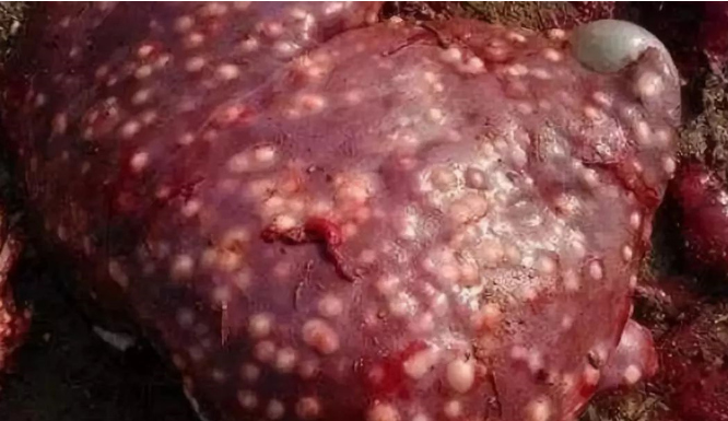 細頸囊尾蚴在豬感染較普遍,牧區(qū)綿羊感染嚴重,牛較少。對羔羊、仔豬等危害嚴重,羔羊表現(xiàn)不安,流涎,不食,腹瀉和腹痛等癥狀,可能已死亡告終。羊生前診斷比較困難,一般在死后解剖發(fā)現(xiàn)。呈囊泡狀,黃豆大或雞蛋大,囊壁乳白色。