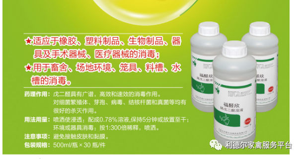 3、福醛欣(稀戊二醛溶液),具有廣譜,高效和速效的消毒作用,對細菌繁殖體、芽孢、病毒、結核桿菌和真菌等均有很好的殺滅作用。