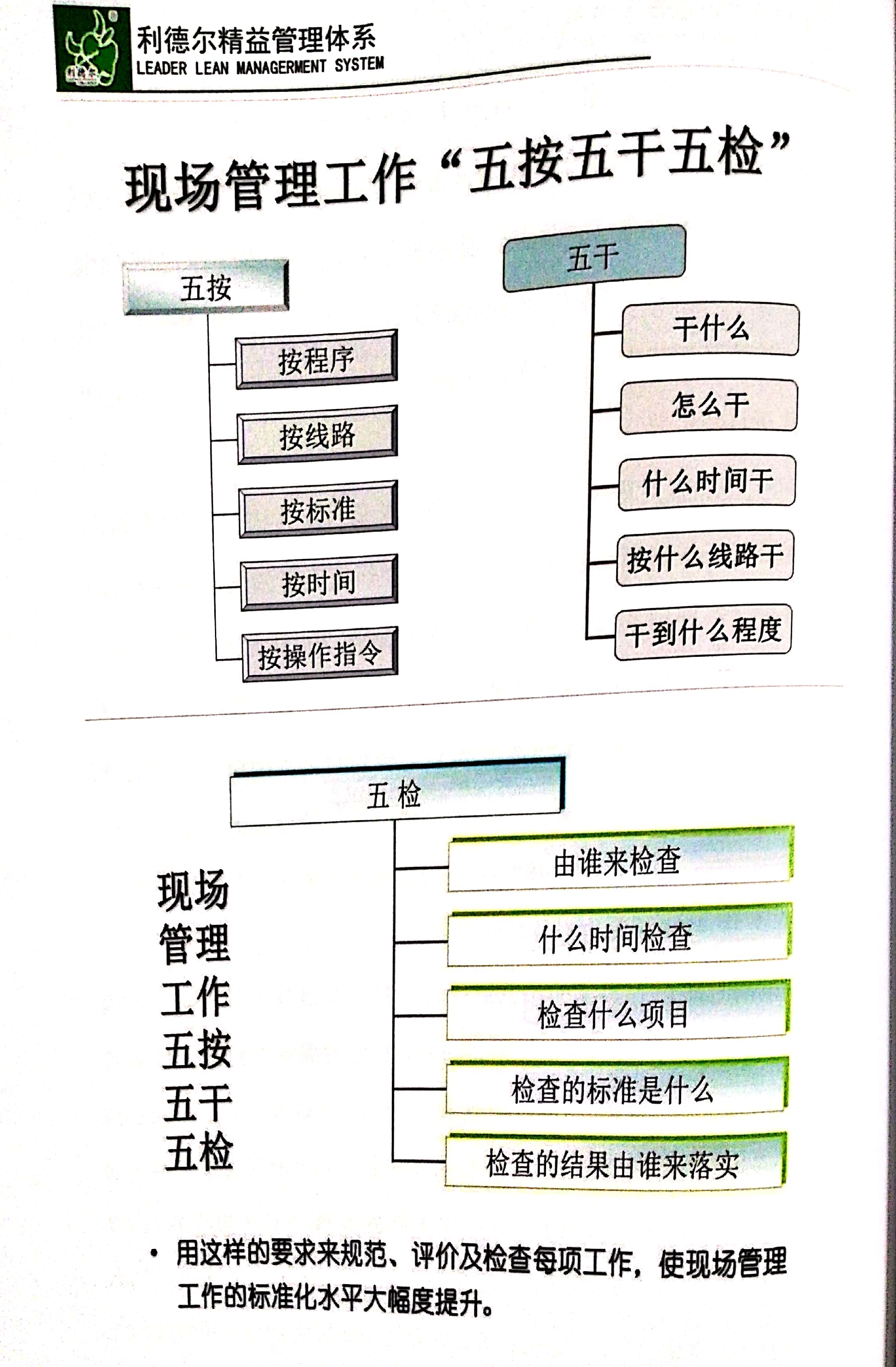 現(xiàn)場管理工作按照“五按五干五檢”.五按:按程序、按線路、按標準、按時間、按操作指令。五干:干什么、怎么干、什么時間干、按什么線路干、干到什么程度。五檢:由誰來檢查、什么時間檢查、檢查什么項目、檢查的標準是什么、檢查的結果由誰來負責。用這樣的要求來規(guī)范,評價及檢查每項工作,使現(xiàn)場管理工作的標準化水平大幅度提升。我們做到了,在質(zhì)疑聲中,在狐疑的目光中,在各種難聽的謾罵聲中我們做到了。不是想給誰證明什么,我們這群人只是想證明一流的工作現(xiàn)場是我們追求的。我們可以做的更好。我們深信一流的工作現(xiàn)場可以提供干凈、整潔、明亮、規(guī)范、有序、高效的工作現(xiàn)場?梢耘嘤霭l(fā)現(xiàn)問題、分析問題、解決問題的一流員工。
